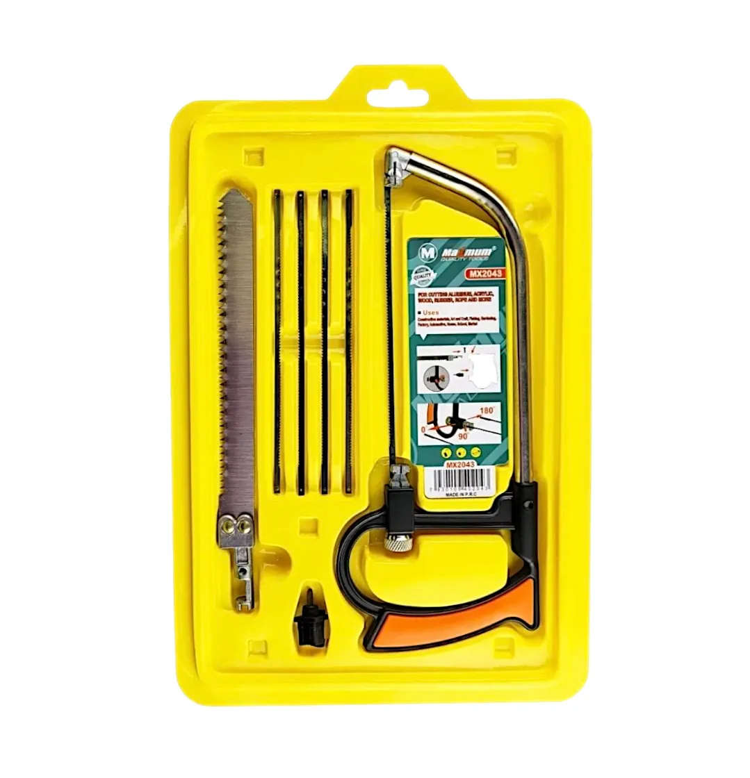 Многофункциональная пила 250 мм поставляется в комплекте с 6 сменными лезвиями, которые применяются для резки заготовок из дерева, пластика и мягких металлов. Может быть использована как пила, ножовка и лобзик при установке соответствующих насадок. Металлический корпус ножовки 250 мм дополнен пластиковой рукояткой, которая не скользит и удобно лежит в руке. Благодаря продуманной конструкции лезвия легко и быстро меняются.