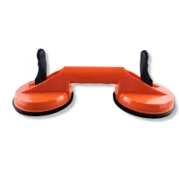 Присоска-стеклодомкрат двойная пластиковая предназначена фиксации, подъема и транспортировки стекол, зеркал, плитки и других изделий и материалов с плоскими гладкими поверхностями. Специальный держатель с рукояткой и фиксаторами, дополнен резиновыми тарелками диаметром по 12 см., обеспечивает создание вакуума между поверхностью тарелки и плоскостью транспортируемого материала. Изготавливается из ударопрочного пластика.